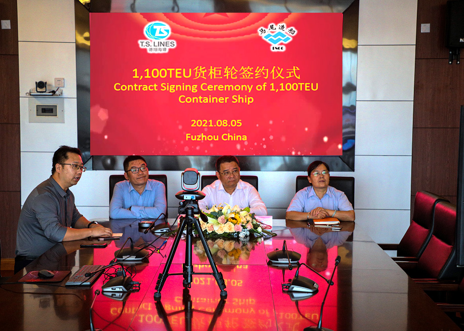 8月5日下午,马尾造船与台湾德翔海运有限公司以云签约的方式,签订6艘1100TEU集装箱船订单。