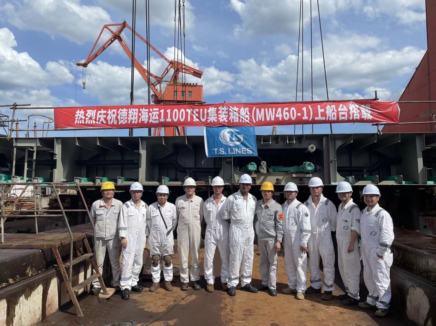 6月28日下午,东南造船建造的1100TEU集装箱船(MW460-1)顺利上船台。